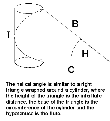 Using our example of the screw above, the assumption is made that each flute of the file is created by the hypotenuse of the triangle, the interflute distance is the height of the triangle and the circumference is the length of the base.