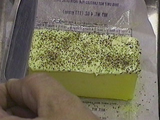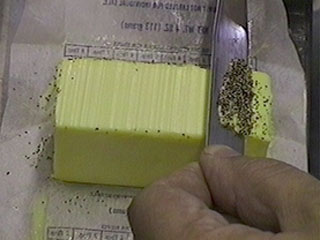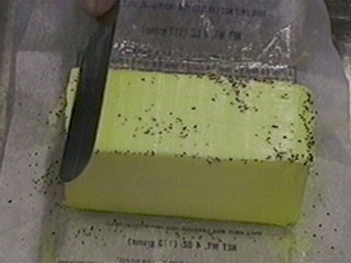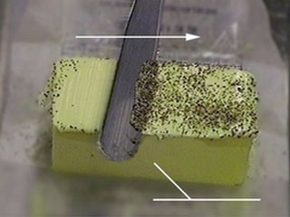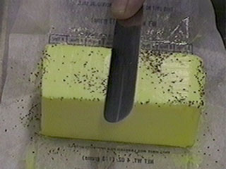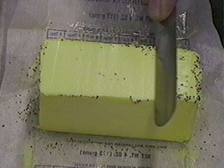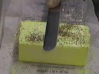 He then re-covered the butter with pepper and this time holding the knife at a positive rake, in one stroke removed all of the pepper.